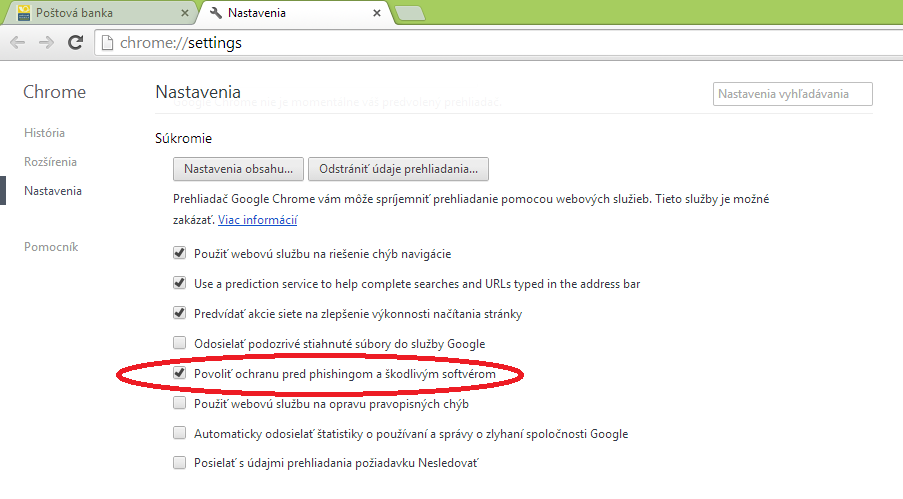 vybrať voľbu "Povoliť ochranu pred phishingom a malware"