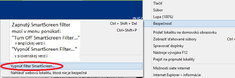 - v Internet Explorer-e 10 a vyššom cez menu Bezpečnosť/Filter SmartScreen/Zapnúť filter SmartScreen